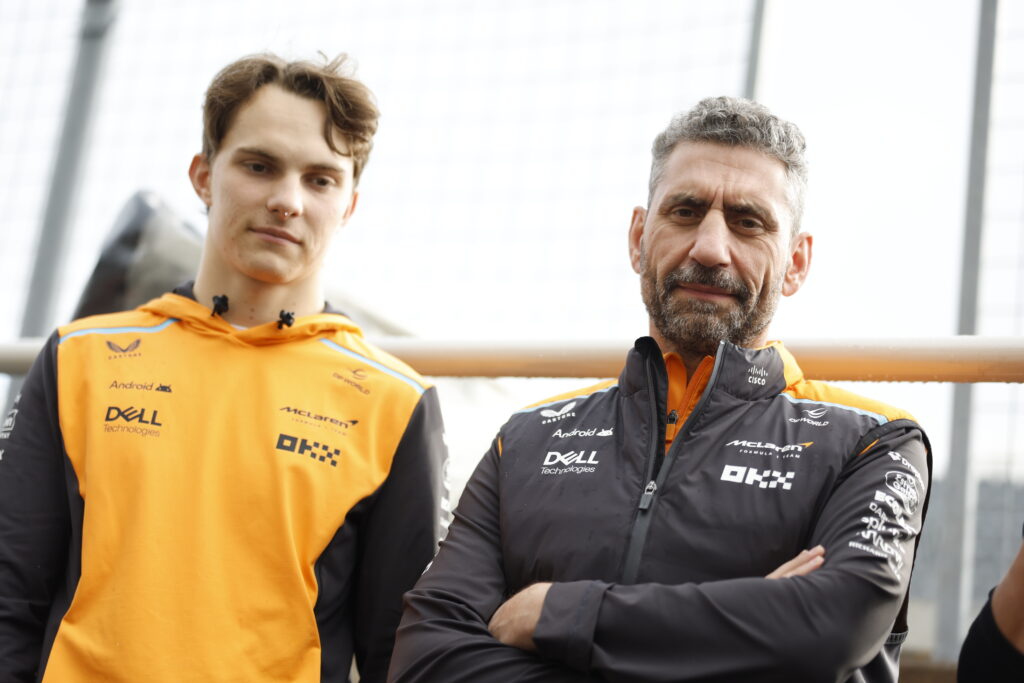 Oscar Piastri, equipo McLaren F1, y Andrea Stella, directora del equipo, equipo McLaren F1
